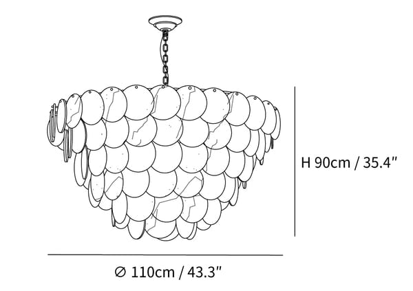 Der Alabaster-Schalen-Kronleuchter ist eine exquisite Darstellung natürlicher Eleganz und luxuriösen Designs. Dieses atemberaubende Stück verfügt über einen Wasserfall aus alabasterfarbenen "Schalen", von denen jede sorgfältig geformt und auf eine sanfte Glanzoberfläche poliert wurde, wodurch ein leuchtendes Dach entsteht, das mit warmem, einladendem Licht strahlt. Hängend von einem Messingrahmen, strahlt der Kronleuchter einen Hauch von Opulenz und verfeinerter Schönheit aus.
