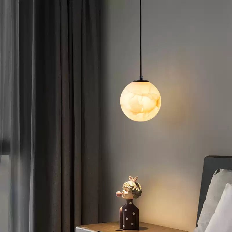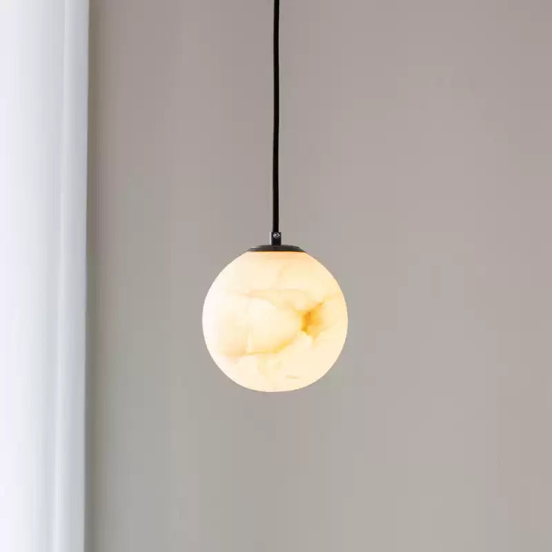 Bernsteinfarbene Alabaster-Globus-Hängelampe