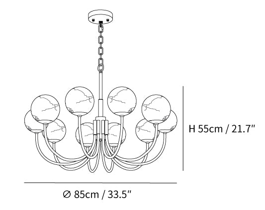 19,7″ verstellbare Aufhänghöhe Kette. Kann auf Anfrage verlängert werden.