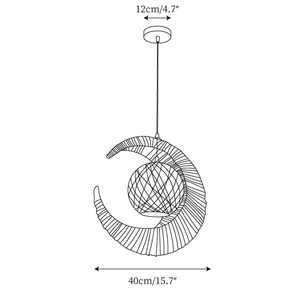Die Mondpendelleuchte ist ein wunderschönes Lichtobjekt, das perfekt für jeden Raum geeignet ist. Sie verfügt über ein zartes, geflochtenes Design in Form eines Halbmonds, das ein sanftes, ambient Licht ausstrahlt. Dieses Licht eignet sich hervorragend, um jedem Balkon oder Raum im Zuhause einen subtilen Flair zu verleihen.