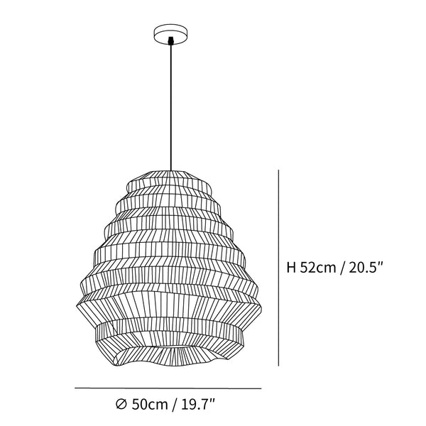 Die Enthüllung des Bamboo Spiral Elegance Pendels, eine fesselnde Verbindung traditioneller Handwerkskunst und zeitgenössischen Designs. Diese Pendelleuchte zeichnet sich durch kunstvoll geflochtene Bambusstreifen aus, die sich spiralförmig um einen zentralen Metallkern winden und ein dynamisches Zusammenspiel von natürlicher Textur und raffiniertem Glanz schaffen.