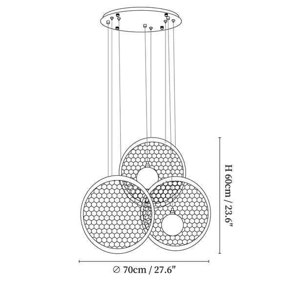 Der Bee Plate Kronleuchter ist ein einzigartiges und künstlerisches Beleuchtungselement, das geometrische Muster harmonisch mit natürlicher Wärme verbindet. Inspiriert von der komplexen Struktur eines Bienenstocks, verfügt dieser Kronleuchter über große, runde Holzplatten, die durchlöchert sind, um das Licht in faszinierenden Mustern filtern zu lassen. Acrylkugeln hinter diesen Platten strahlen ein sanftes, ambientes Licht aus und schaffen ein beeindruckendes Zusammenspiel von Licht und Schatten.