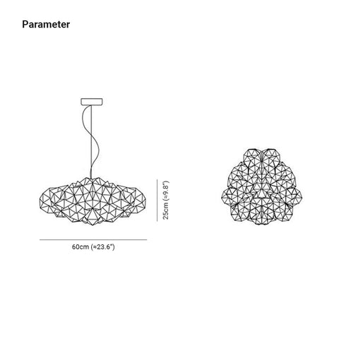 - Inspiriert von der bezaubernden Schönheit einer diamantförmigen Wolke, verkörpert unser Pendelleuchtendesign die Ästhetik moderner Empfindungen. Es ist nicht nur ein Lichtobjekt; es ist ein fesselndes Kunstwerk, das Ihrem Wohnraum einen modischen Akzent verleiht. Das Zusammenspiel von Winkeln und Kurven in diesem exquisiten Design wird die Blicke auf sich ziehen und Gespräche anregen, wodurch Ihr Zuhause zu einem Gesprächsthema der Bewunderung wird.