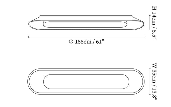 Größe: L 155cm x B 35cm x H 14cm / L 61" x B 13.8" x H 5.5" (Leistung: ~67W)
