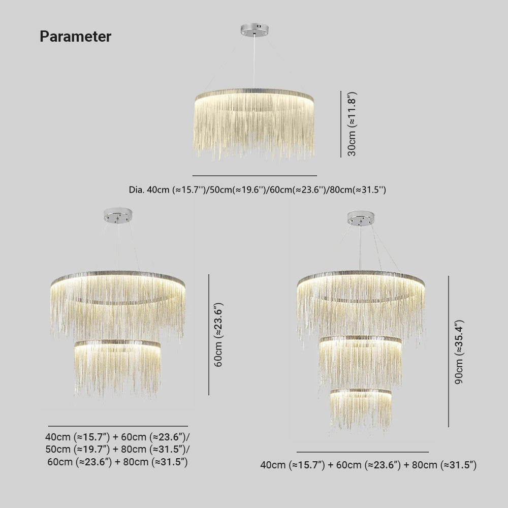 Kolon-Tassel-Ketten-Art-Déco-Hängeleuchte Silber/Gold Wohnzimmer/Halle