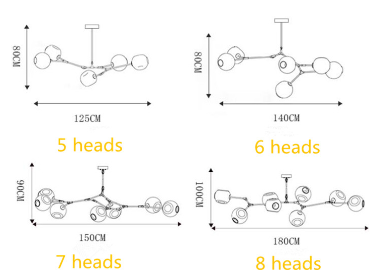 Das 3-flammige Design wäre ideal für eine ruhige Ecke, wie ein Wohnzimmer oder über dem Esstisch. Und wenn Sie einen großen Raum mit höherem Lichtbedarf haben, können Sie sich für die 9-flammige Ausführung entscheiden.