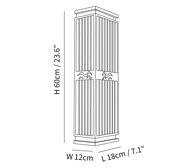 Größe: L 18cm x B 12cm x H 60cm / L 7.1″ x B 4.7″ x H 23.6″