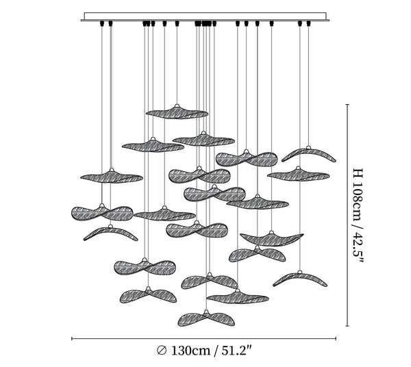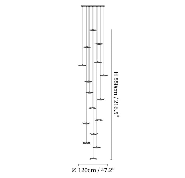 16 Köpfe Größe: Durchmesser 120 cm x Höhe 550 cm / ∅ 47.2 x H 216.5"