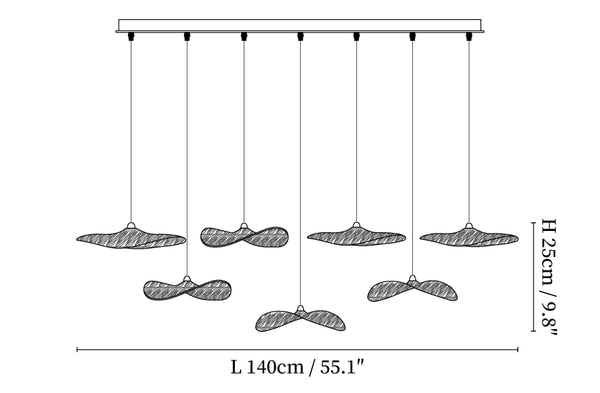 7 Köpfe Größe: L 140 cm x H 25 cm / L 55.1" x H 9.8"