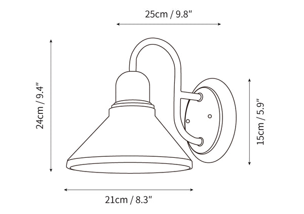 Fable ist eine rustikale Außenwandlampe-Serie. Der Metallschirm mit Käfigdetails, der die Glühbirne freilegt, verleiht einen frischen Landhausstil. Der abgerundete Arm, der an der Deckenplatte befestigt ist, fügt eine einfache Eleganz hinzu.