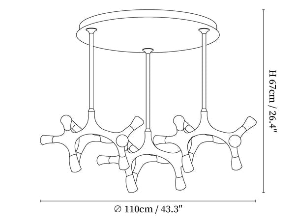 27 Köpfe: Ø 110 cm x H 67 cm / ∅ 43,3" x H 26,4"