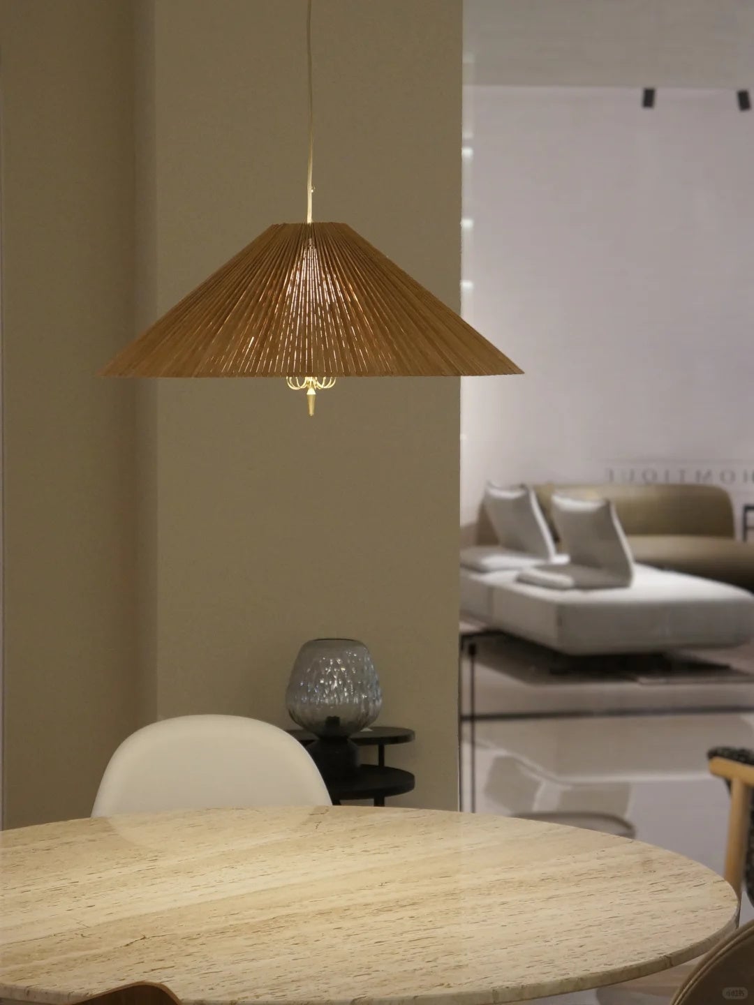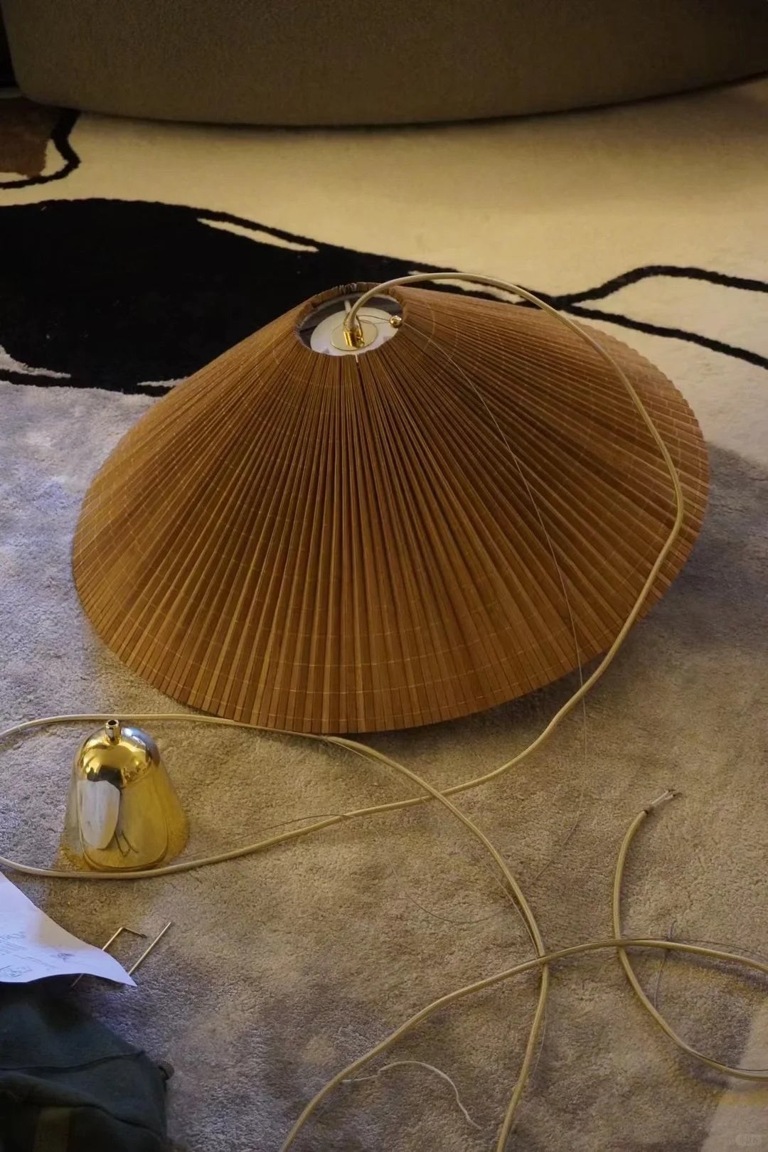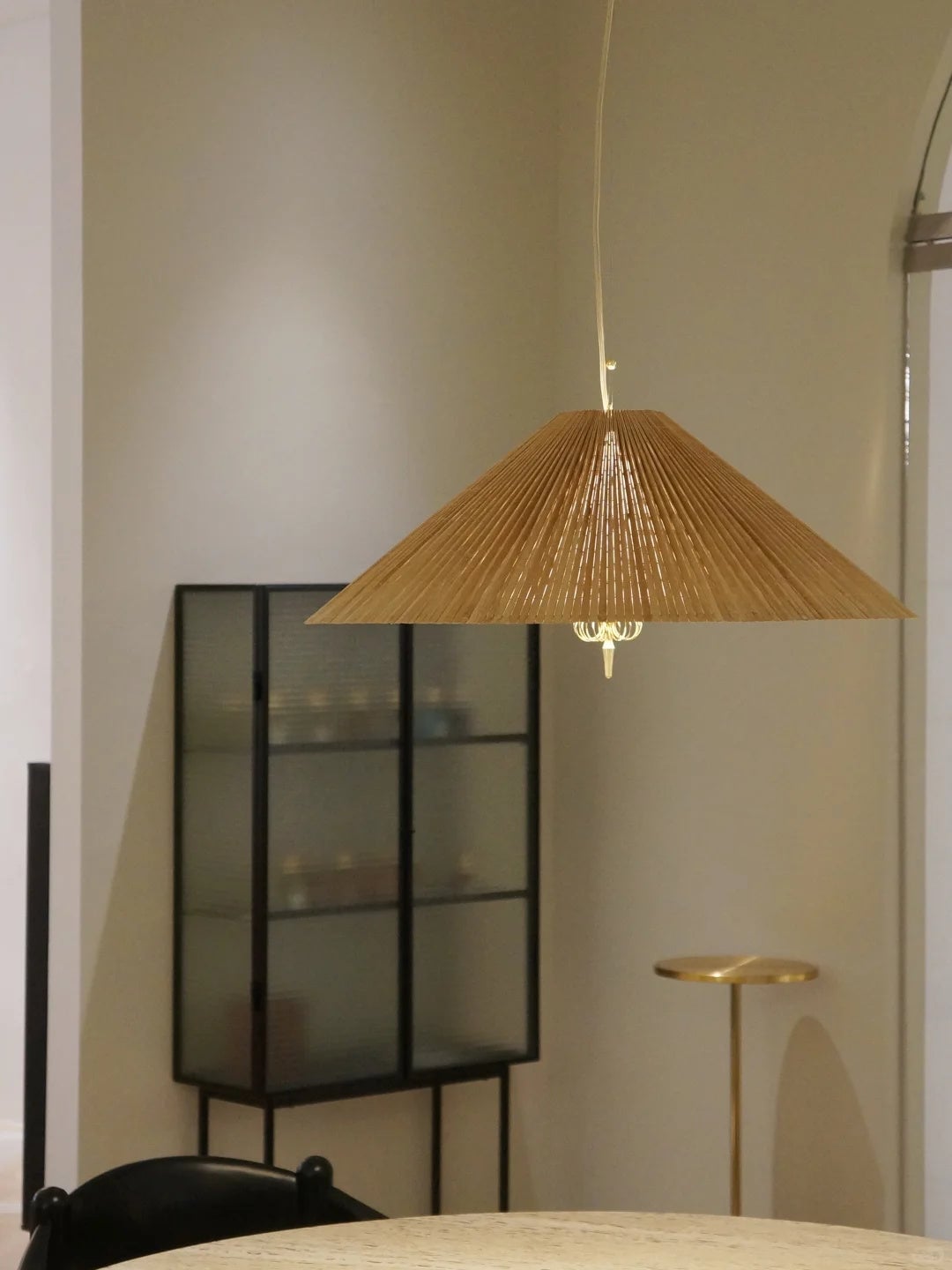 Introducing the 1972 Chinese Hat Chandelier-60cm, a 60cm masterpiece that brings timeless elegance to any interior. Designed by Paavo Tynell, this pendant light features a clean, sophisticated silhouette that combines modern minimalism with mid-century charm. Its warm, diffused glow creates a welcoming ambiance, perfect for dining rooms, living spaces, or entryways. Crafted with premium materials, this iconic design adds a touch of luxury and style to your home decor. Transform your space with this unique statement piece from GUBI.
