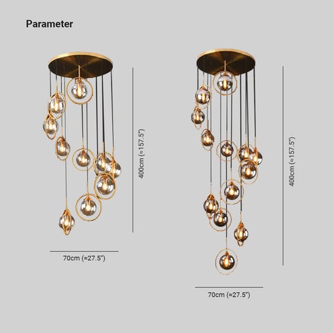 Hailie Moderne Spiral-Kugel-Glas-Treppenleuchte, Klar/Amber/Rauchgrau