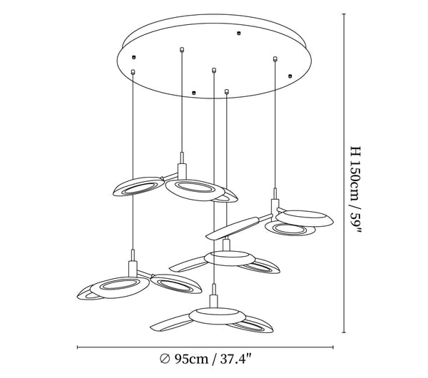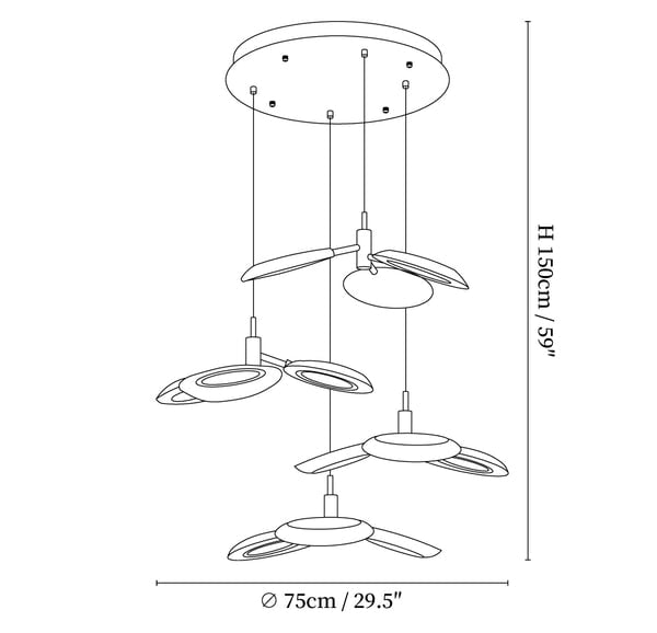 Runde Deckenplatte 5 Köpfe Größe: Ø 95 cm x H 150 cm / ∅ 37,4″ x H 59″
