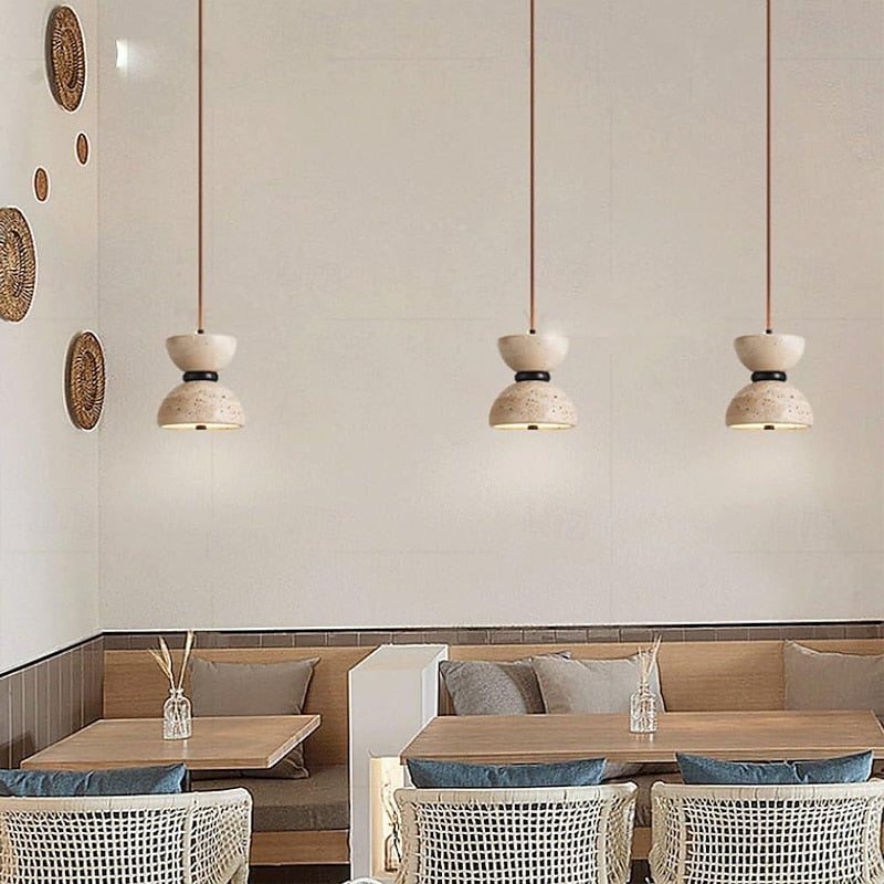Japanisch Stil Doppel-Schalen Travertin Pendelleuchte