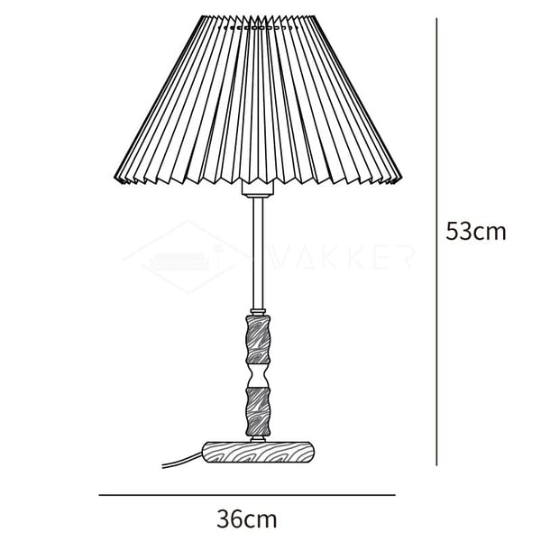Eine Lampe mit einem Walnussfuß, Messingdetails und dem typischen Faltenschirm. Letzterer streut das Licht wunderbar im Raum, was eine einzigartige Atmosphäre schafft und besonders im Schlafzimmer oder im Wohnbereich zur Geltung kommt.