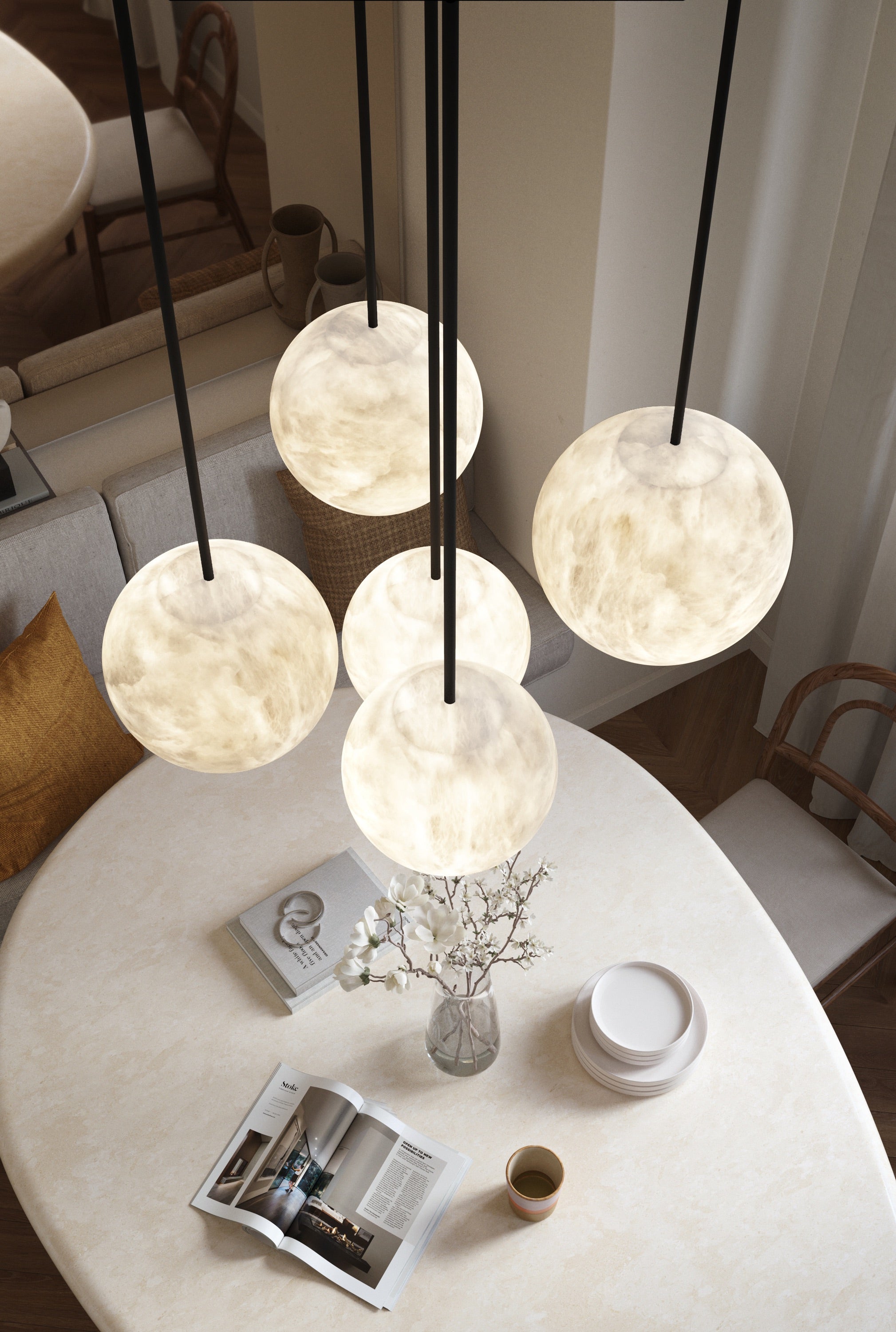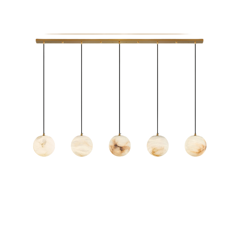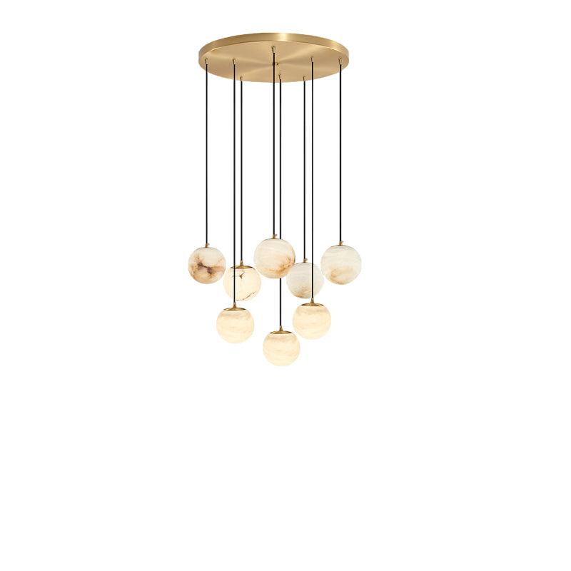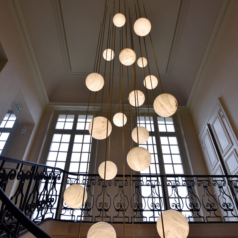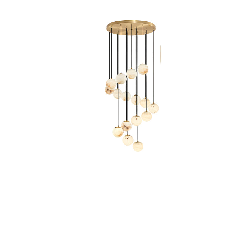 Elevate your home decor with the Luxury Multi-Globe Alabaster Light from liootrlamp. This stunning chandelier features multiple alabaster globes suspended at varying heights, creating a dynamic and elegant visual effect. Perfect for staircases and grand entryways, it adds a touch of sophistication and luxury to any space. The warm glow from the alabaster globes provides a welcoming ambiance, making it an ideal centerpiece for modern villas and upscale interiors.