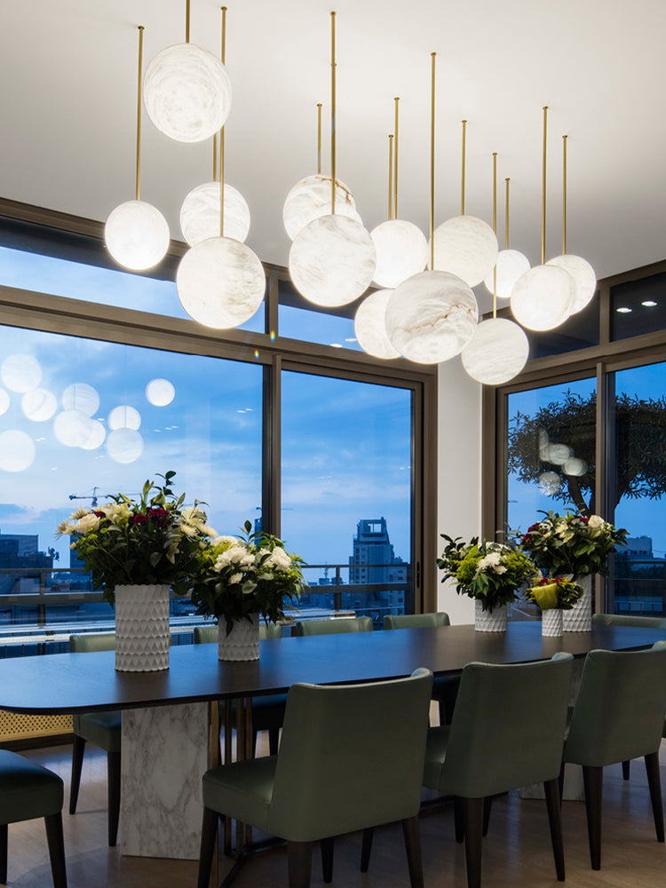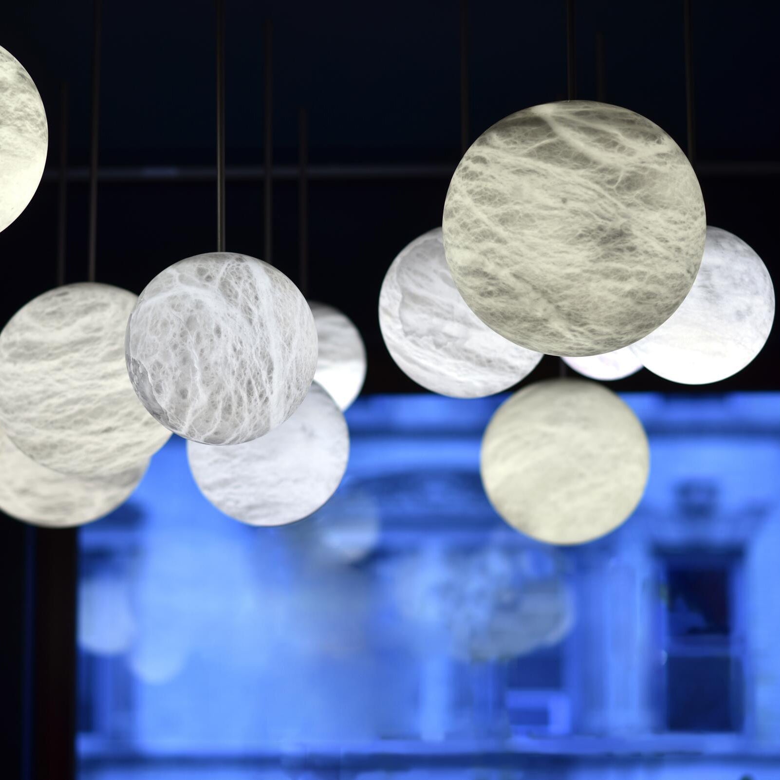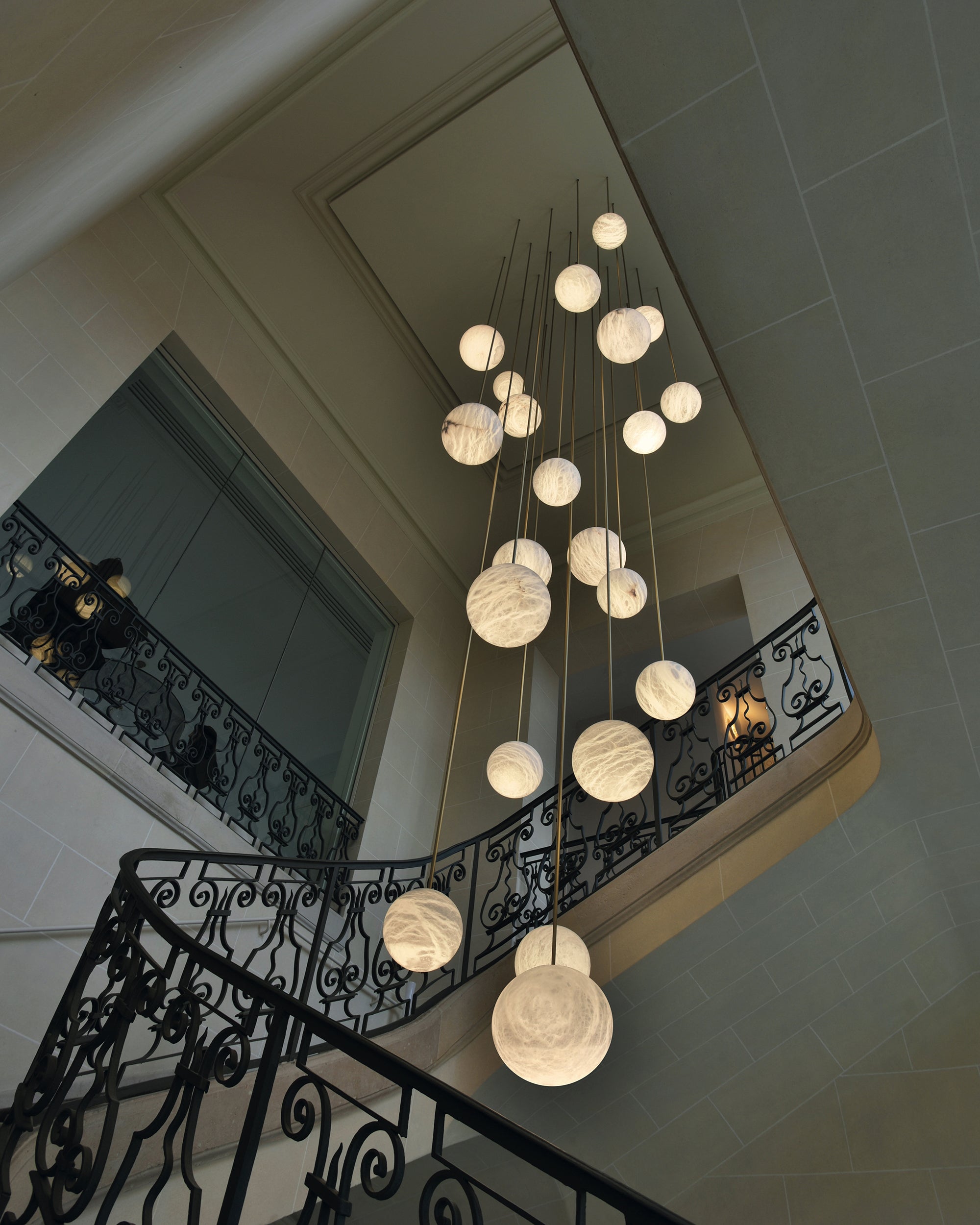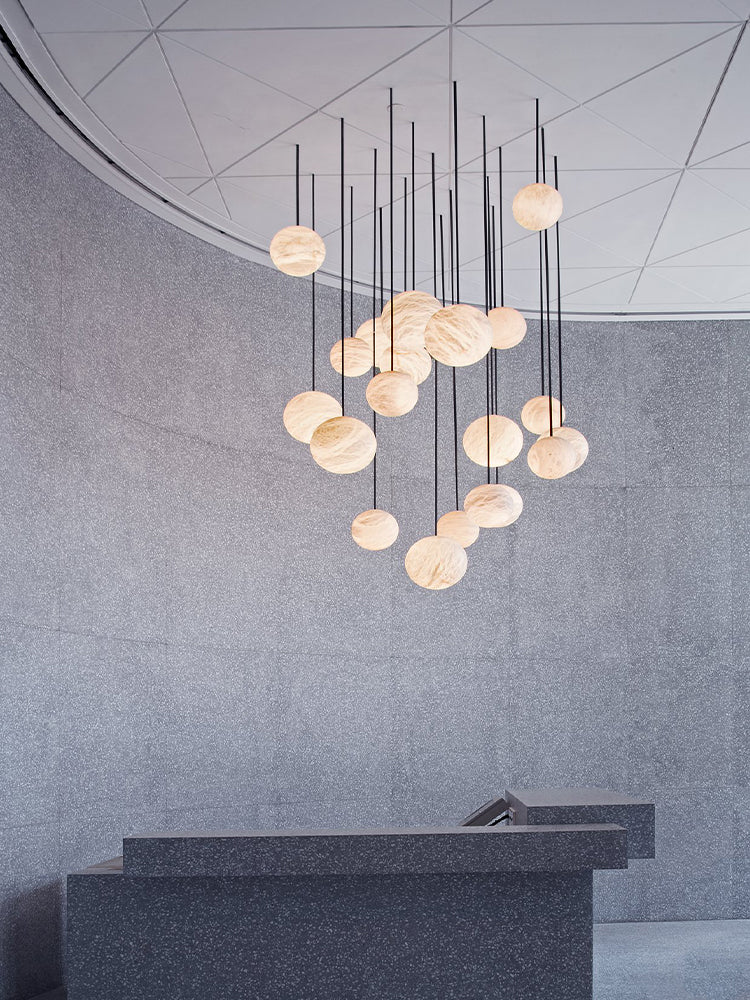 Elevate your home decor with the Luxury Multi-Globe Alabaster Light from liootrlamp. This stunning chandelier features multiple alabaster globes suspended at varying heights, creating a dynamic and elegant visual effect. Perfect for staircases and grand entryways, it adds a touch of sophistication and luxury to any space. The warm glow from the alabaster globes provides a welcoming ambiance, making it an ideal centerpiece for modern villas and upscale interiors.