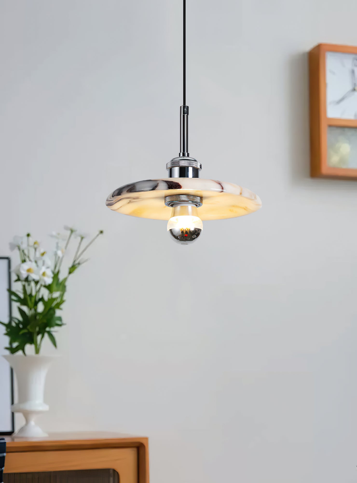 Our marble stripe Pendant Light adds an elegant touch to your space. The creative design not only adds a sense of sophistication, but the environmentally friendly marble lampshade also protects your eyes. Simple yet sophisticated, it is the perfect addition to any modern decor.