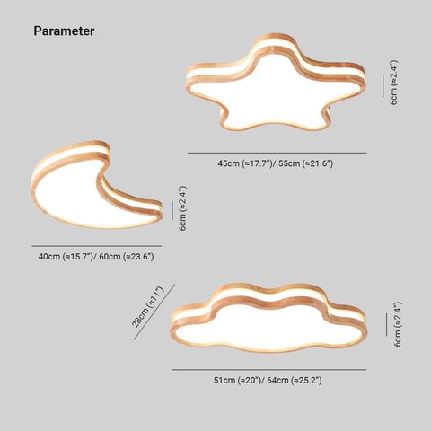 Minori Mond/Wolke/Sternform Deckenleuchte, Holz & Acryl