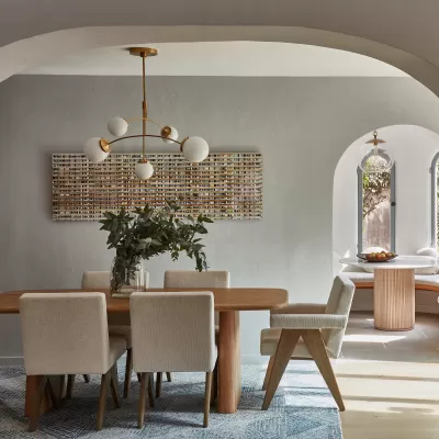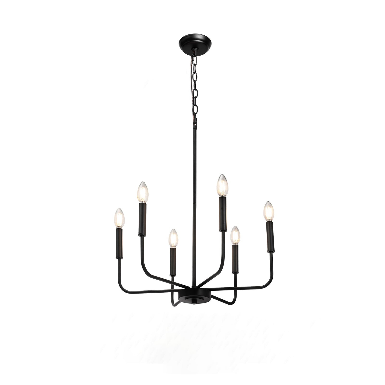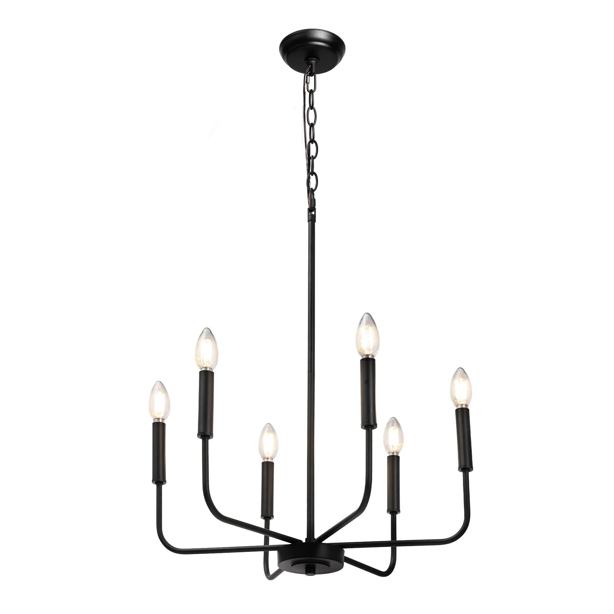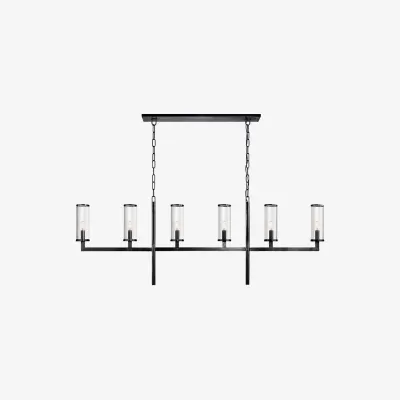 This modern black candlestick chandelier provides soft lighting perfect for any dining experience. Its sleek design adds a touch of sophistication to any room while creating a warm and inviting atmosphere. Elevate your dining experience with this elegant chandelier.