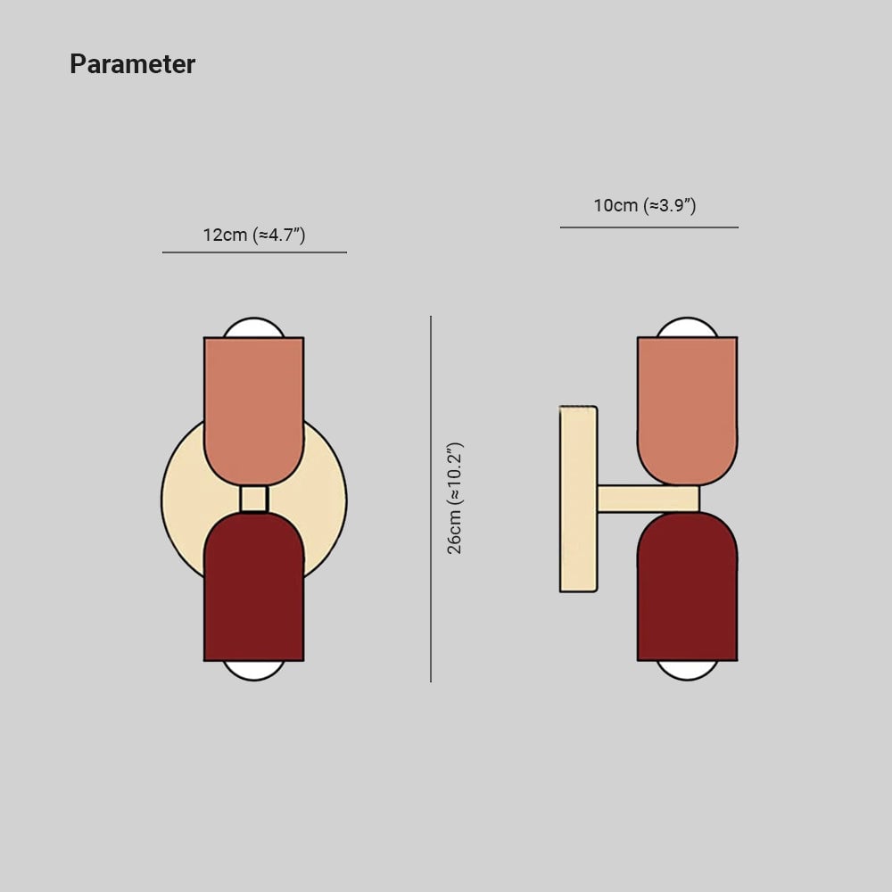 - Mit einem scharfen Blick für Ästhetik entworfen, besticht diese Wandleuchte durch ein sorgfältig durchdachtes Gesamtlayout, das die Nützlichkeit der Beleuchtung nahtlos mit der Eleganz des Designs verbindet. Die Integration verschiedener Farben auf dem Lampenschirm spiegelt nicht nur den Geist moderner Inneneinrichtung wider, sondern verstärkt auch die künstlerische Ausstrahlung jedes Raumes, den sie ziert. Die zweiköpfige Konfiguration der Lampe bietet sowohl Funktionalität als auch Vielseitigkeit und sorgt für eine ausgewogene Beleuchtung, die ideal für verschiedene Umgebungen wie Schlafzimmer, Nachttisch, Wohnzimmer oder Arbeitszimmer ist.