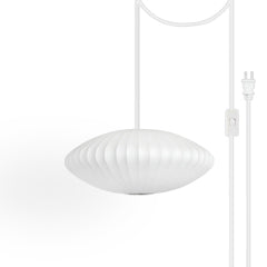 Erleuchten Sie jeden Raum mit dem zeitlosen Design der Nelson Bubble Pendelleuchte. Ihre ikonische Form und das sanfte, diffuse Licht verleihen Ihrem Zuhause oder Büro einen Hauch von Eleganz im Mid-Century-Modern-Stil. Diese Pendelleuchte aus Polymer ist langlebig und bringt einen stilvollen Akzent in Ihre Einrichtung. Das Ergebnis ist eine sanfte, organische Ästhetik, wenn sie beleuchtet ist.