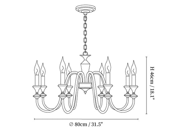 Der Noir-Kandelaber-Kronleuchter schöpft seine Inspiration aus dem klassischen Charme traditioneller Kandelaber-Beleuchtung, angereichert mit einer modernen, minimalistischen Ästhetik. Die elegante schwarze Oberfläche betont die Silhouette und verleiht ihr eine zeitgenössische Note, während sie den zeitlosen Reiz von kerzenartigen Kronleuchtern bewahrt. Die eleganten Arme, die sich anmutig ausstrecken, um die Lichter zu halten, schaffen einen auffälligen Kontrast zu den klaren Glaselementen und machen ihn zu einer anspruchsvollen Ergänzung für jeden Raum. Dieser Kronleuchter ist darauf ausgelegt, ein Gefühl von Dramatik und Raffinesse hervorzurufen, perfekt für die Schaffung einer intimen Atmosphäre in Esszimmern, Wohnräumen oder großen Eingangsbereichen. Sein mutiges, aber zurückhaltendes Design ist ein Zeugnis für die anhaltende Anziehungskraft des klassischen Schwarz.