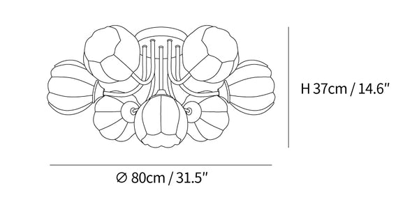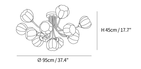 9 Köpfe Größe: Durchmesser 80 cm x Höhe 37 cm / ∅ 31.5″ x H 14.6″