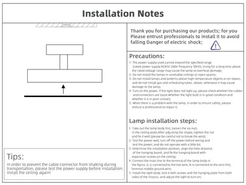 | Bitte beachten Sie, dass es aufgrund manueller Messungen zu einem Fehler von 1-3 cm bei der Größe kommen kann. Die Bilder können aufgrund des Lichts und des Monitors leichte Farbabweichungen aufweisen. Wir danken Ihnen im Voraus für Ihr Verständnis. Es wird empfohlen, die Installation der Lampe von einem professionellen Elektriker durchführen zu lassen. | |