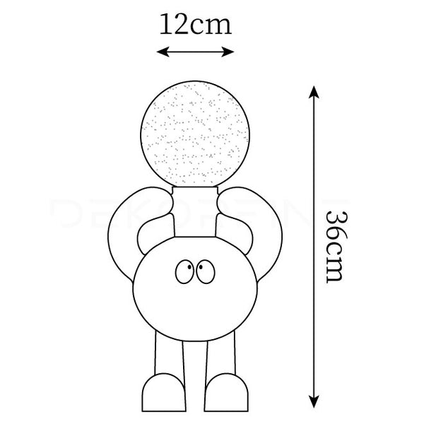 Dies ist eine niedliche Tischlampe, die wie eine Cartoonfigur geformt ist. Der Lampenschirm oben wird mit 3D-Drucktechnologie hergestellt, und der Lampenkörper ist aus einem Stück aus Harz gefertigt.