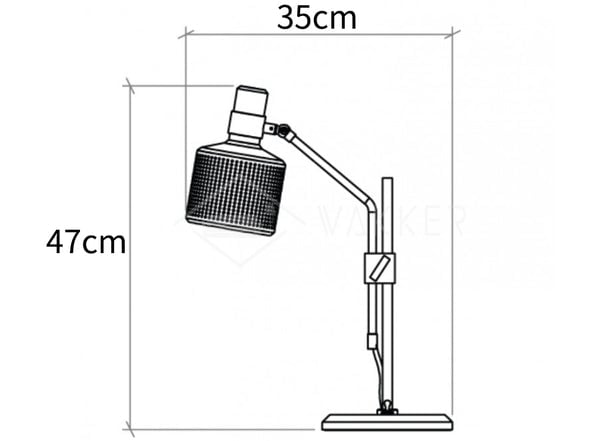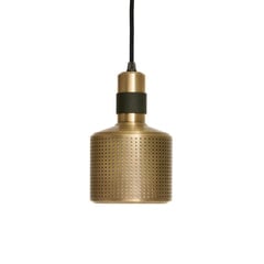 Die Riddle Tischlampe strahlt ein warmes Licht durch einen perforierten Schirm mit einem Stoffeinsatz aus und lässt sich um 270 Grad drehen, wodurch sie mühelos einen gewünschten Raum beleuchten kann. Ein Kippschalter an der Basis sorgt für funktionale Benutzerfreundlichkeit.