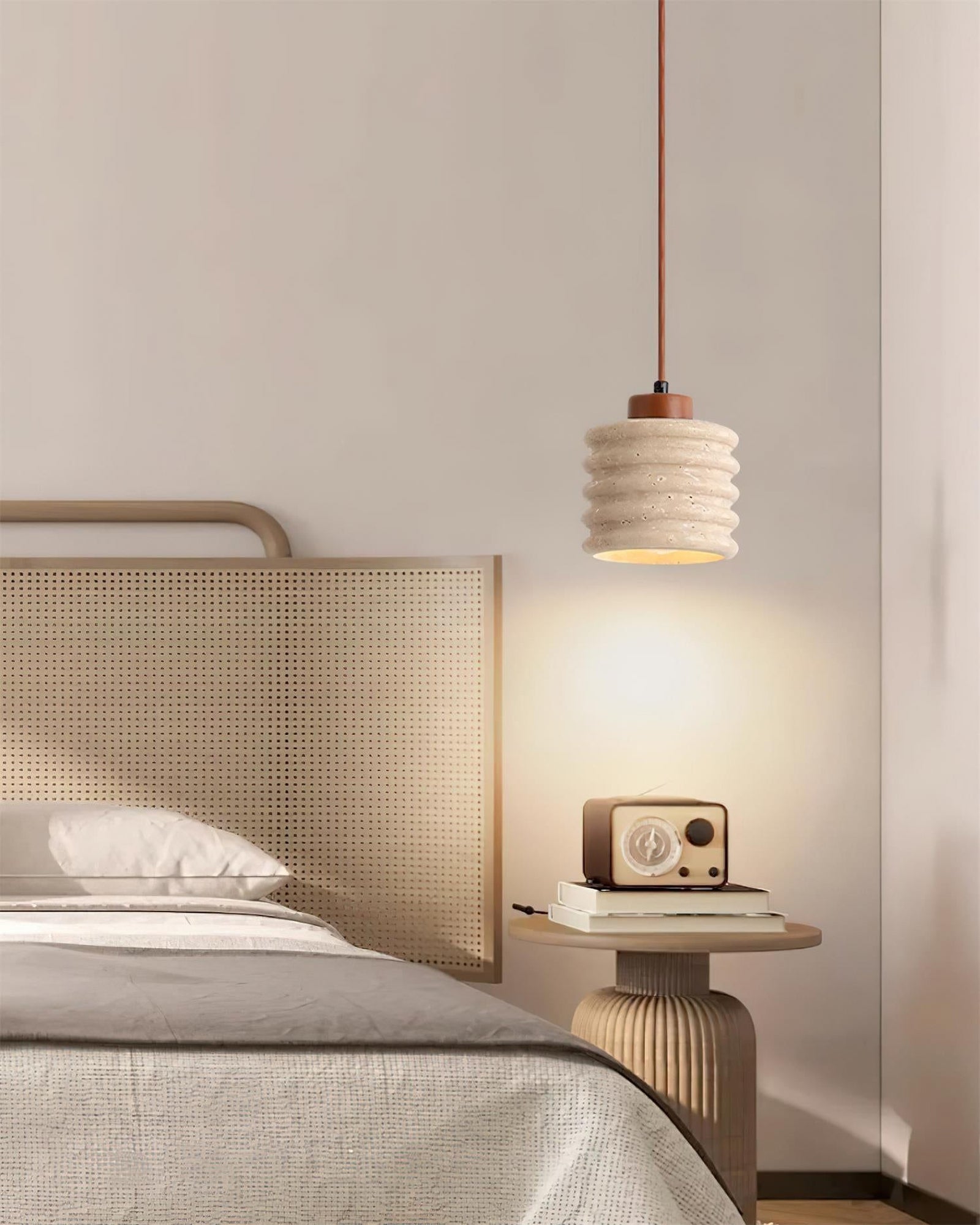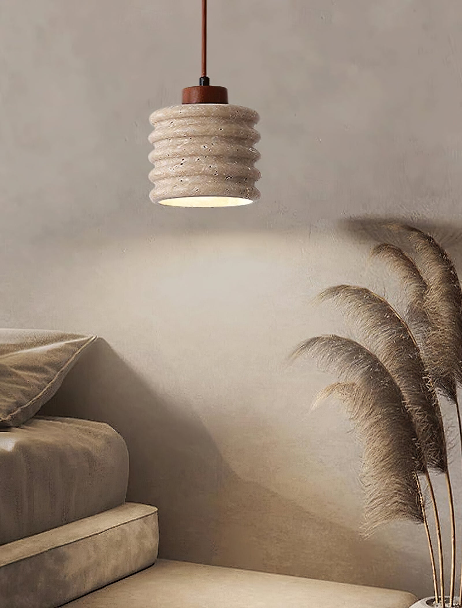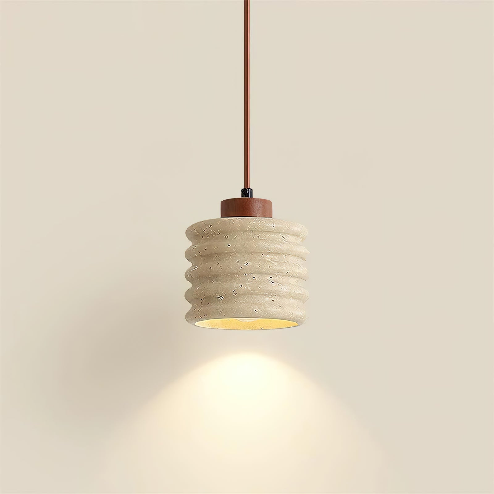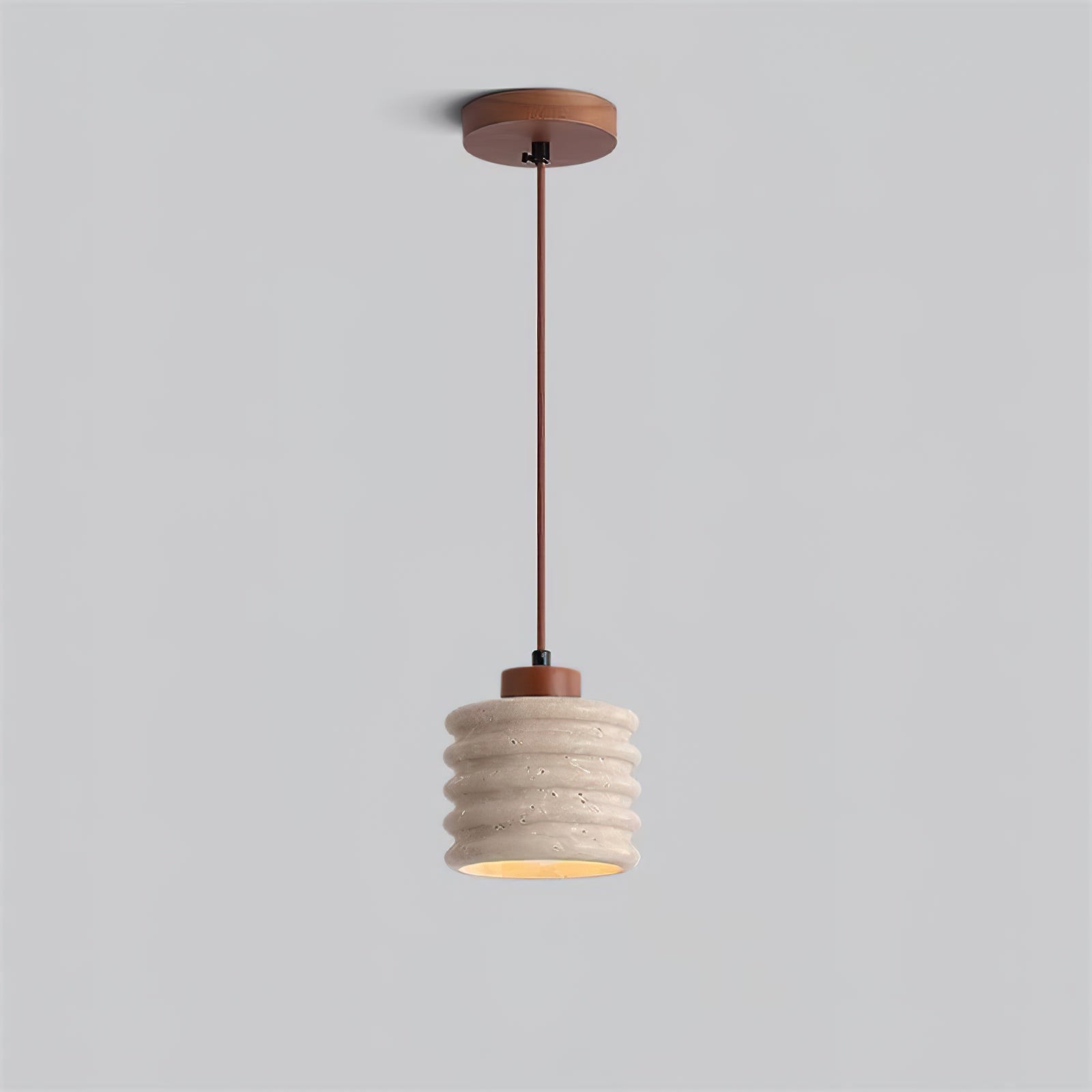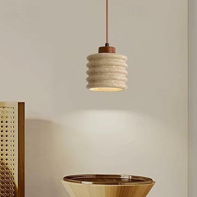 Der rustikale Travertinzylinder-Hängelampe mit Holzakzent strahlt natürliche Eleganz mit einem Hauch von rustikalem Charme aus. Mit einem gerippten Travertinstein-Schirm hebt diese Pendelleuchte erdige Texturen und warme Töne hervor, die perfekt sind, um eine einladende Atmosphäre zu schaffen. Die Holz-Deckenhalterung und der Stab fügen eine organische Note hinzu und ergänzen die rohe Ästhetik des Travertins. Ideal für Küchen, Essbereiche oder Wohnräume kombiniert diese Pendelleuchte natürliche Materialien mit minimalistischem Design und macht sie zu einem vielseitigen Stück, das jede Einrichtung mit seiner zurückhaltenden Raffinesse bereichert.