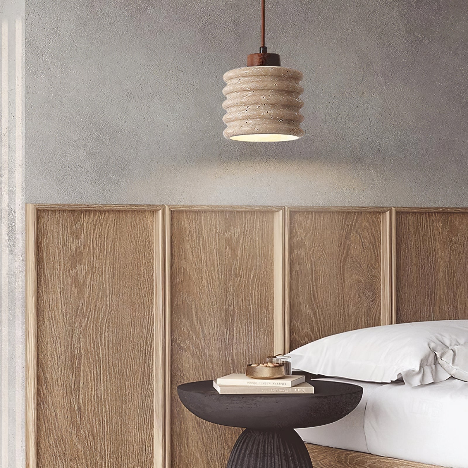 Rustikaler Travertinzylinder mit Holzakzent