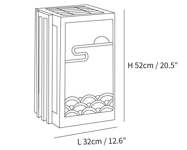 Solarbetriebene Version Größe: L 32cm x B 30cm x H 52cm / L 12.6″ x B 11.8″ x H 20.5″