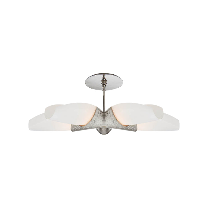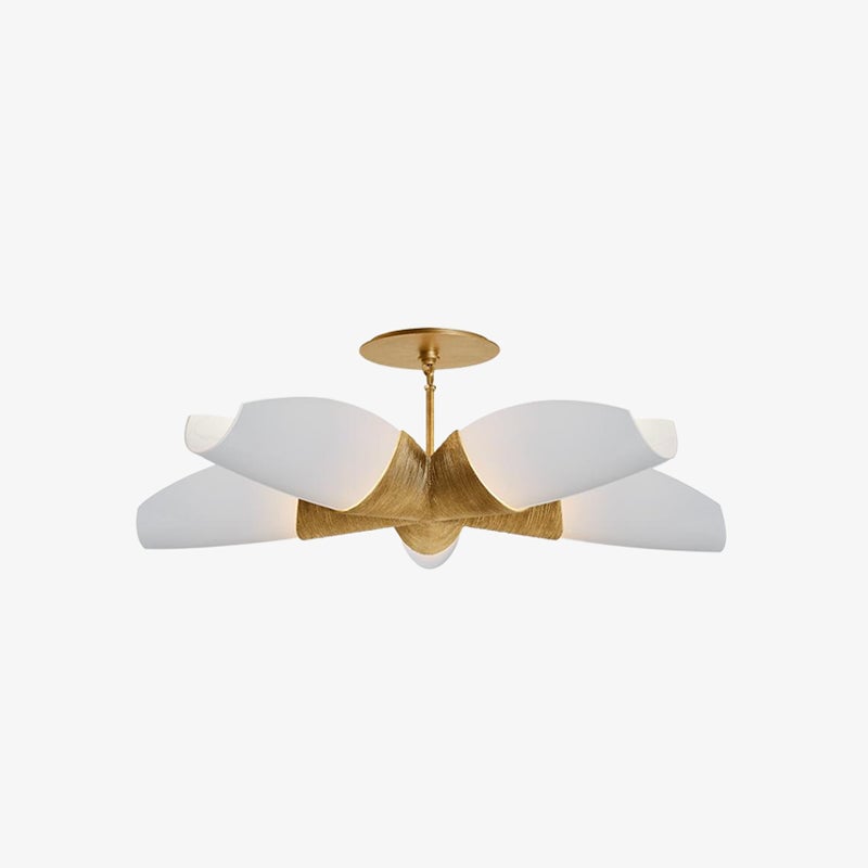 Discover a modern masterpiece with the Utopia Five-Arm Chandelier! Designed by Kelly Wearstler, this stunning chandelier features a gilded finish and a unique ribbed texture. Five elongated glass molds are arranged in a fan-shaped pattern, adding a touch of elegance to any space. Don't miss this one-of-a-kind piece.
