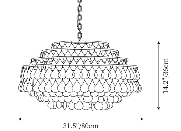 Hängende Kette 50 cm / 19,7″. Die Länge der Aufhängungskette kann nach Bedarf geändert werden. (Kontaktieren Sie uns).
