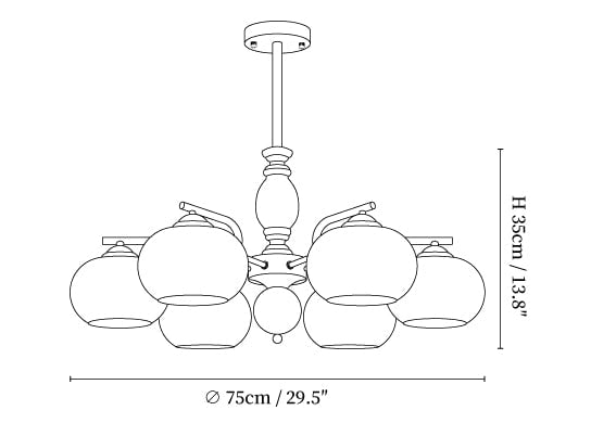 6 Köpfe Größe: Durchmesser 75 cm x H 35 cm / ∅ 29,5″ x H 13,8″